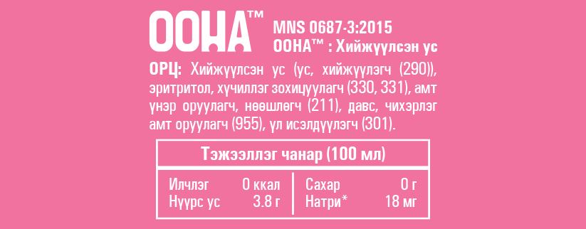 Эдгээр шинж чанарын үндсэн дээр OOHA брэндийн бүх төрлийн бүтээгдэхүүн нь илчлэггүй буюу “0 калори” хэмээн шошгологдсон байдаг. Бүтээгдэхүүний шошгон дээрх тэмдэглэгээг АНУ-ын Хүнс, Эмийн Захиргаа (FDA), Европын Холбоо болон CODEX-ын стандартаас иш татсан Монгол улсад мөрдөгдөж буй шошгололтын стандартын дагуу хянаж, баталгаажуулдаг. Иймд OOHA брэндийн бүх амт, төрөл нь хэрэглэгчдэд илчлэггүй, эрүүл сонголтыг санал болгож байна.